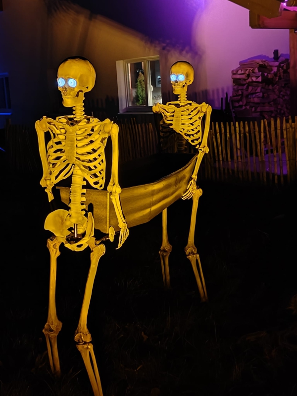 Die fleissigen Sargträger kommen inkl. eines offenen Sarges.