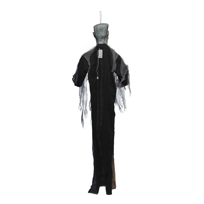 Dead Fred ist eine furchterregende Monster-Dekoration, die aktiviert wird, sobald Sie Geräusche machen. Mit ihrer Größe von 180 cm, den rot leuchtenden Augen und den gruseligen Geräuschen sorgt diese untote Puppe für Gänsehaut pur an Halloween. Die perfekte interaktive Dekoration für Spukhäuser und Halloween-Partys zu Hause.