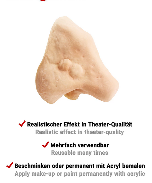 Mit dieser professionellen Latexapplikation gelingt einfach und schnell die Verwandlung in eine alte Hexe oder in einen anderen Charakter mit markanter Nase. Die Hexennase wird wie alle maskworld Latex-Applikationen in Deutschland nach einem maskenbildnerischen