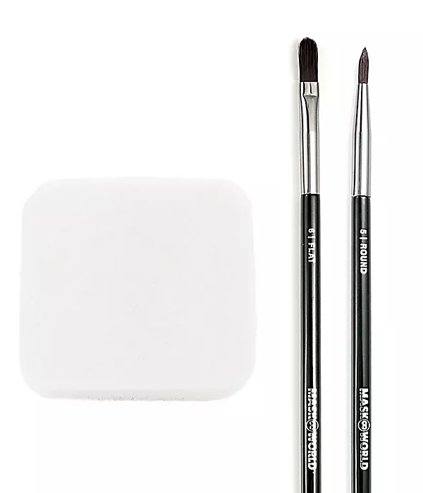 Pinsel-Schwamm-Set mit 2 unterschiedlichen Pinseln und einem Schminkschwamm
