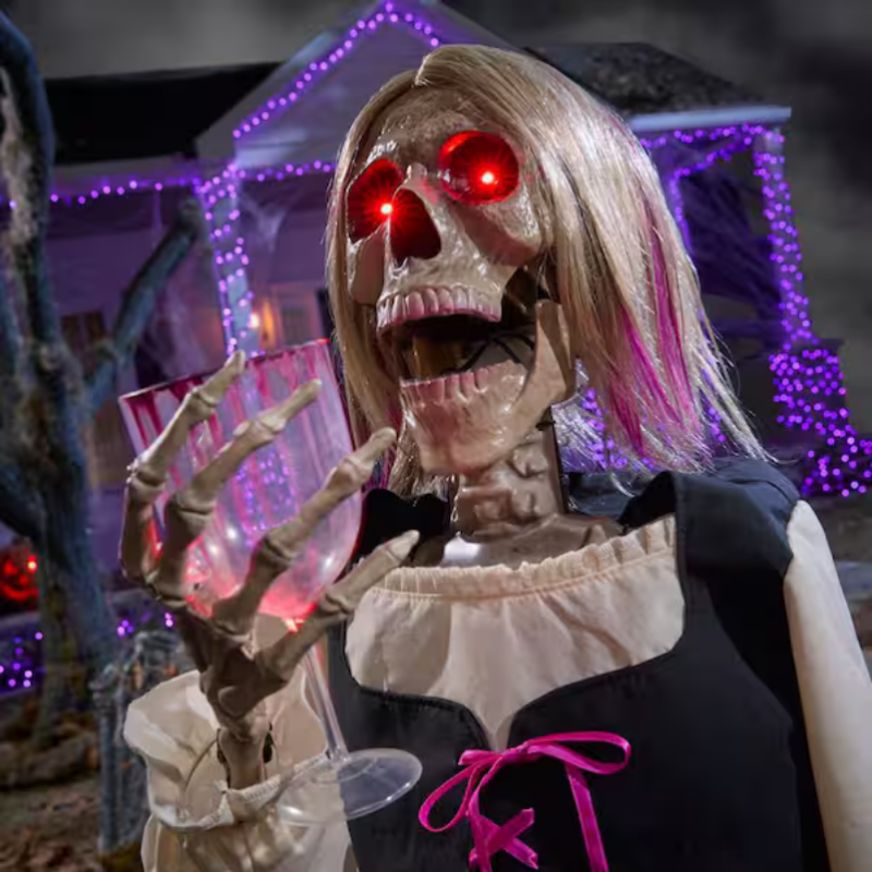 Die ca. 137 cm große Cabernet Casualty sorgt mit ihrem eindrucksvollen „Pop-up“-Schreckeffekt und 8 einzigartigen voraufgezeichneten Sätzen für gruselige Aufmerksamkeit. Diese durch einen Bewegungssensor aktivierte Figur schnellt aus einem realistisch gestalteten Weinfass nach oben und überrascht Gäste mit einem beweglichen Kiefer und LED-Augen. Ihr leuchtendes LED-Weinglas verleiht der Szene eine unheimliche Atmosphäre, während sie mit ihren 8 Sprüchen eine Mischung aus energiegeladenem Grusel und „Wine O’clock“-Humor bietet. Diese Animatronic ist für den Innenbereich oder geschützten Außenbereich geeignet. Sie verfügt über einen funktionalen Fassdeckel, mit dem sich der Auslösemechanismus nach dem Einsatz sicher deaktivieren lässt. Mit einer Höhe von ca. 137 cm wird die Figur per Netzstecker betrieben; ein Adapter ist im Lieferumfang enthalten. Für einen sicheren Aufbau werden 2 Personen benötigt, der Aufbau dauert etwa 30 Minuten.
